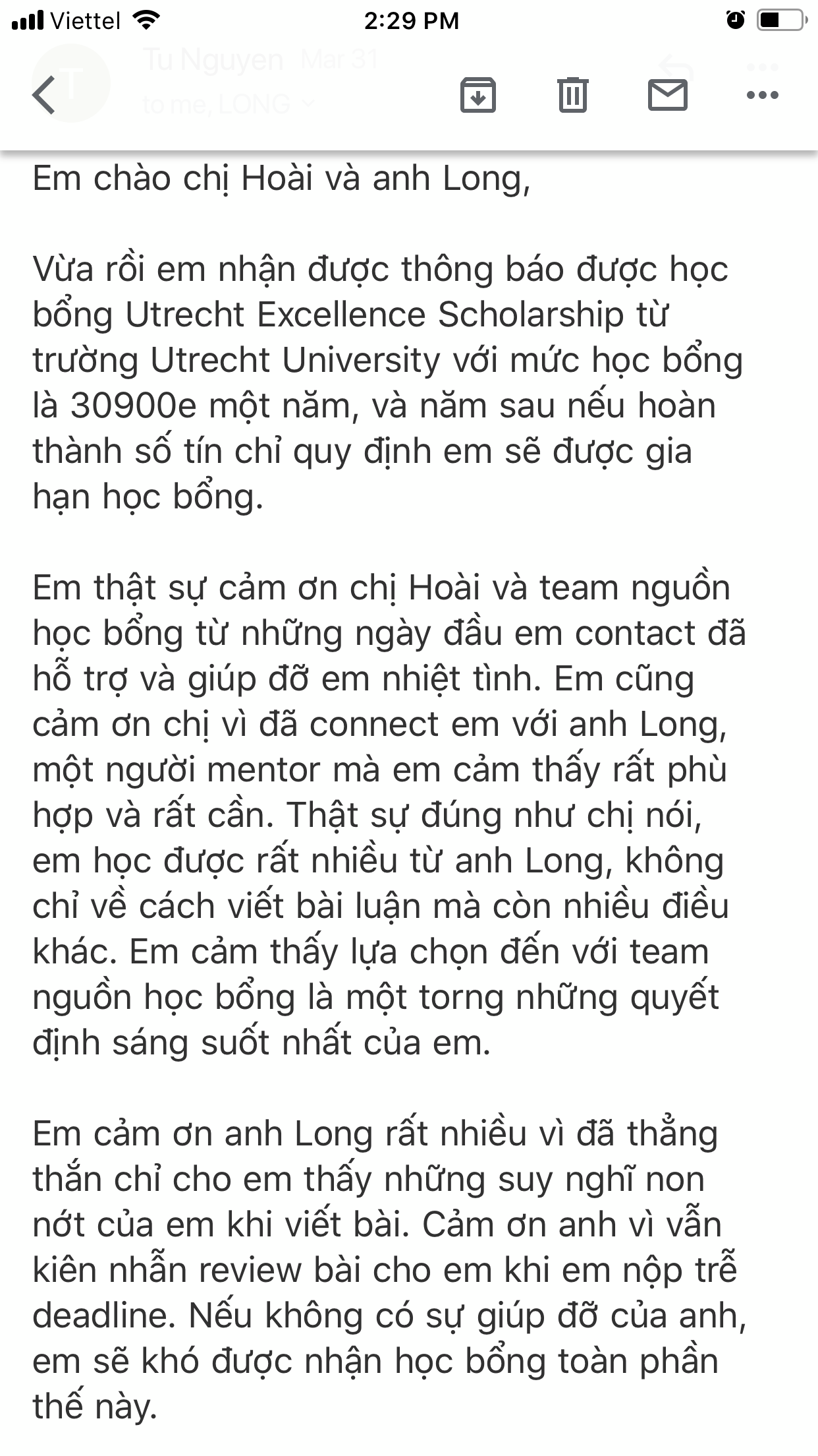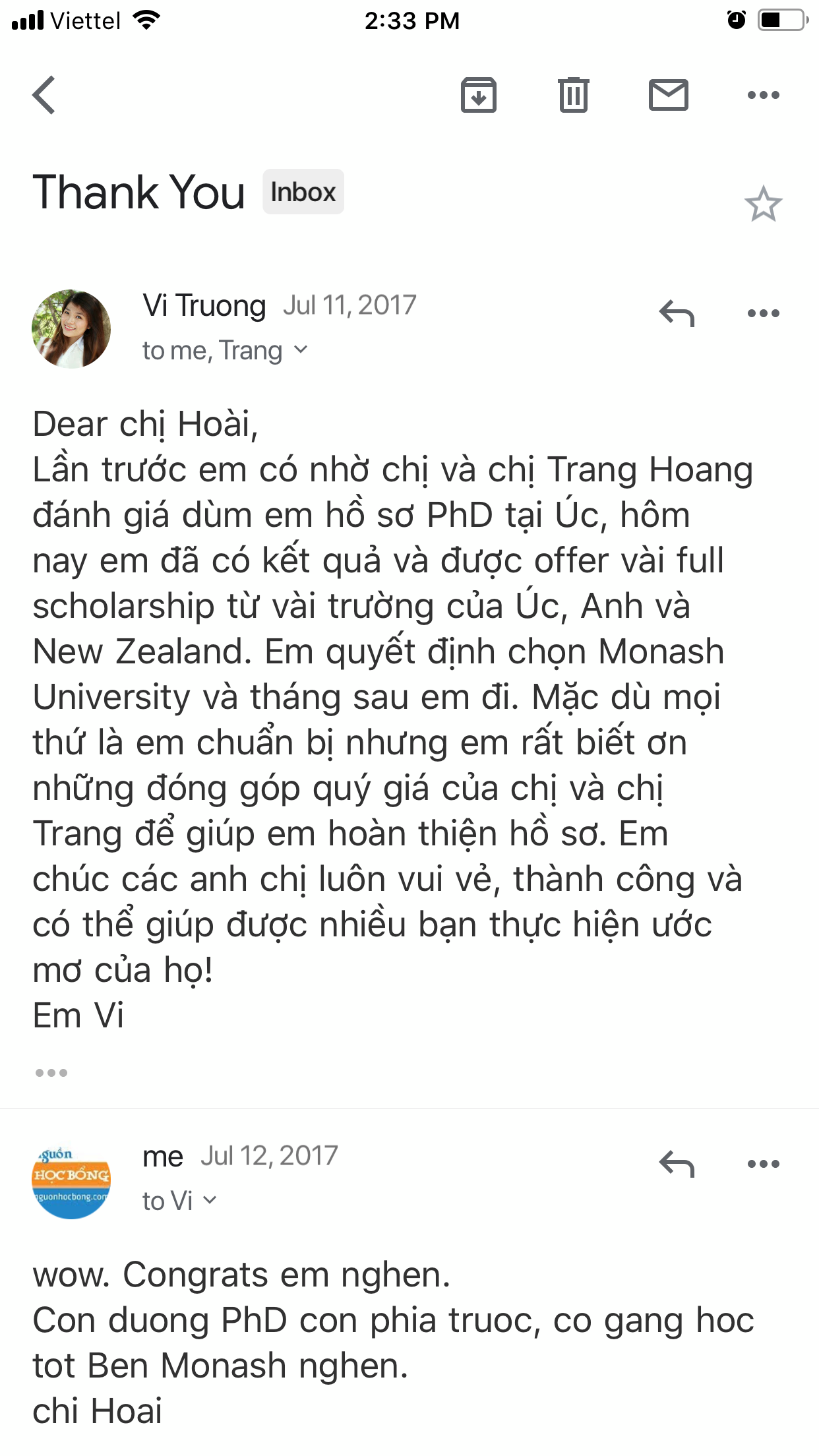Hồ sơ học bổng đã được review
